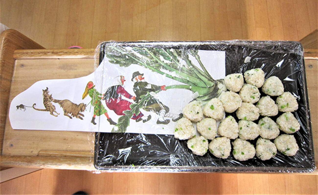 保育で行った遊びの延長で出てくる献立は、どれも子どもたちに大好評です。子どもたちのやりたい気持ちを育みながら、疑問や発想をヒントに、それらを形にすることで食育に繋げていきます。